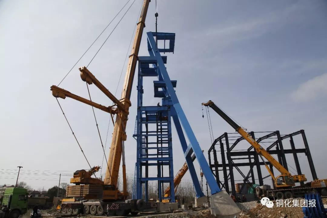 3月17日下午,新橋礦業(yè)公司露天轉(zhuǎn)地下項目現(xiàn)場,在3臺巨型吊車的吊裝牽引下,70多噸重的副井斜架與38米高的立架順利連接,新的副井井架巍然屹立于新橋圣沖河畔,標志著該公司重點礦建工程之一的露天轉(zhuǎn)地下項目地表礦建工程基本完工,經(jīng)過一段時間設備安裝和調(diào)試后便可投入生產(chǎn)。