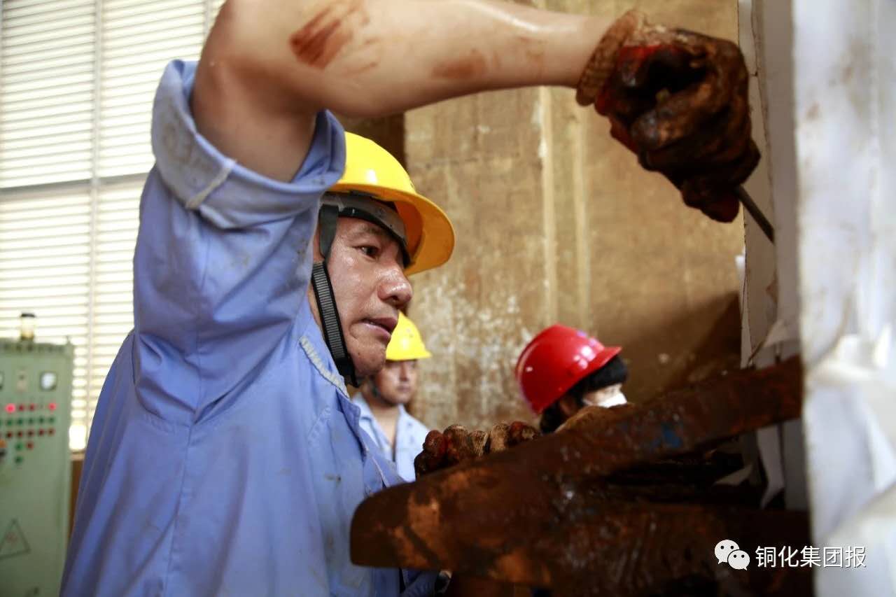 7月2日,在新橋礦業(yè)公司污水處理站壓濾平臺(tái),壓濾工正在固定更換的板框式壓濾機(jī)濾布。汛期,每天都要更換130~150張濾布。