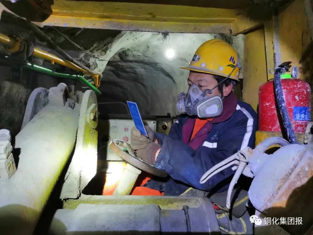 下圖:鏟運(yùn)機(jī)司機(jī)蔣繼能在作業(yè)前閱讀風(fēng)險識別卡。
