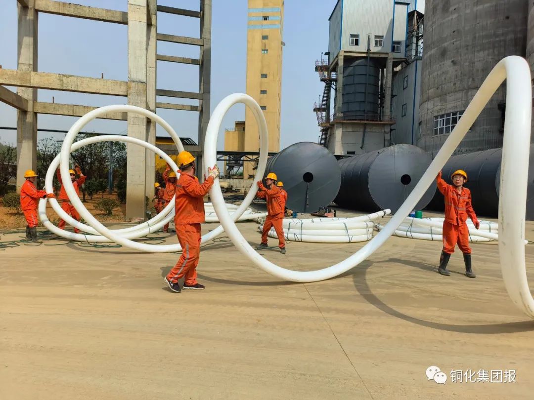 在施工現(xiàn)場(chǎng),工人師傅們或肩扛,或手拉,全力完成管道鋪設(shè)任務(wù)。充填管道盤起來(lái)時(shí)直徑較大,運(yùn)輸起來(lái)很麻煩;管道壁較厚,捋直也是對(duì)技巧、體力和耐力的考驗(yàn)。師傅們將洗潔精涂在內(nèi)接外壁上進(jìn)行潤(rùn)滑,一絲一絲將內(nèi)接塞入管道內(nèi)??ü俊⒗瓧U等每一道工序都需要細(xì)致檢查,才能確保接好的管道投用后無(wú)“跑、冒、滴、漏”現(xiàn)象。在大家的共同努力下,三百多米的充填管道很快鋪設(shè)完畢,為后續(xù)負(fù)36米平臺(tái)新建水泵房的邊坡支護(hù)及采坑生態(tài)修復(fù)創(chuàng)造了條件。
