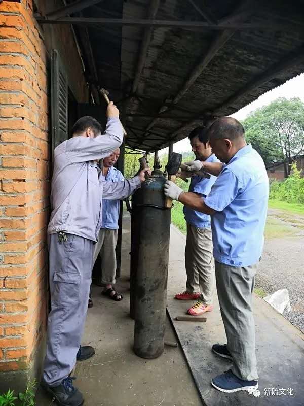 坐上皮卡車(chē),我們一路顛簸來(lái)到一處偏遠(yuǎn)的庫(kù)房,氧氣乙炔儲(chǔ)存點(diǎn)。路上,李部長(zhǎng)給大家做了簡(jiǎn)單的說(shuō)明,原來(lái)今天是要給氣瓶套上防震圈,簡(jiǎn)稱(chēng)“套圈”。防震圈不屬于氣瓶的附件,所以入庫(kù)的氣瓶都沒(méi)有佩戴防震圈。但按照國(guó)家危險(xiǎn)品運(yùn)輸有關(guān)規(guī)定,在運(yùn)輸和裝卸氣瓶時(shí),必須佩戴防震圈。為了防止氣瓶在運(yùn)輸過(guò)程中發(fā)生震動(dòng)或碰撞危險(xiǎn),保證領(lǐng)用單位使用安全,倉(cāng)儲(chǔ)部決定,自行購(gòu)買(mǎi)防震圈并安裝。